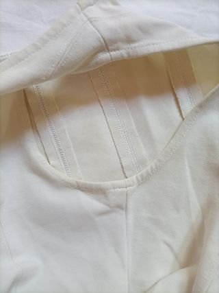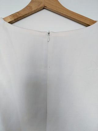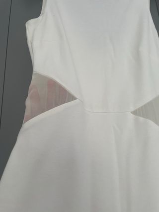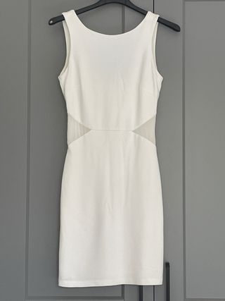 Abitino a tubino Colore bianco latte Trasparenze in vita Scollo a V sulla schiena Arriva sopra il ginocchio Con fodera Taglia M Misure: Da ascella a ascella 37cm Lunghezza tot 85cm prezzo trattabile è molto bello, in condizioni perfette, senza macchie o aloni, indossato pochissimo tessuto non trasparente