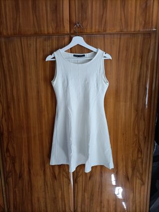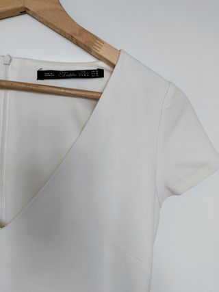 Abito bianco Zara, taglia M (38/10). - Vestibilità aderente - Elegante scollo a V - Maniche corte