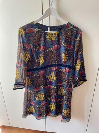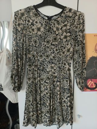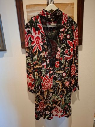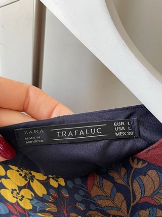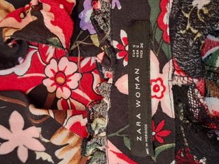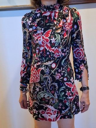 Elegante abito firmato Zara collezione Trafaluc con motivo floreale, scollo e zip sul retro, taglia L, dimensioni (solo fronte da raddoppiare per il giro): spalle 39 cm, vita 42 cm, fianchi 48 cm, lunghezza totale 82 cm, nuovo con cartellino