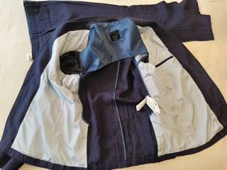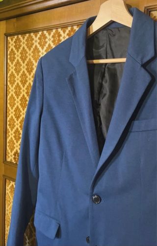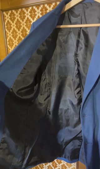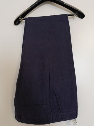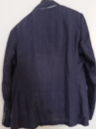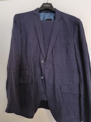 Completo giacca e pantaloni in lino, colore blu. Perfetto per occasioni eleganti. - È un completo in ottime condizioni. - Il tessuto è di alta qualità.
