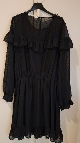 Abito Zara con volant in rete puntinata nera.Taglia M. Materiale poliester e viscosa. Usato in ottime condizioni 😍.