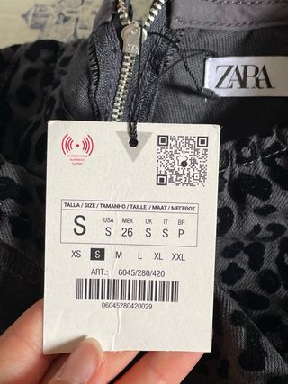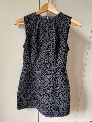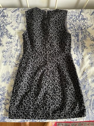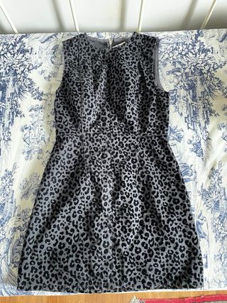 Abito Zara animalier nero con effetto velluto, taglia S, chiusura zip sul retro, dimensioni SOLO FRONTE (da raddoppiare per giro): spalle 33 cm, vita 35 cm, fianchi 44,5 cm, lunghezza totale 80 cm, nuovo con cartellino