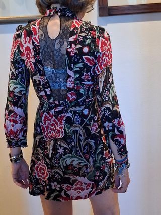 Miniabito Zara fiori, manica lunga, pizzo, S