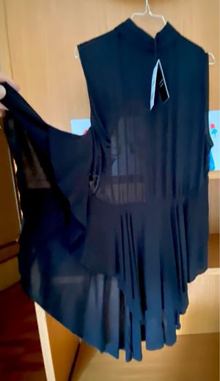 Bellissimo abito nero Zara, taglia S mai indossato, con ancora il cartellino. - Modello a camicetta senza maniche. - Balze sul fondo. - Lunghezza asimmetrica.