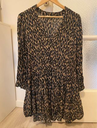 abito Zara con stampa animalier. - Maniche lunghe. - Cintura con fibbia. - Scollo a V.