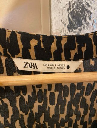 Bellissimo vestito Zara taglia S (EUR). Modello corto, a maniche tre quarti, con bottoni. - Stampa leopardata in nero e marrone. - Vestibilità comoda. - Perfetto per ogni occasione!