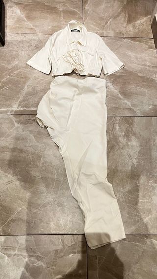 Completo due pezzi Zara. - Top a maniche lunghe con scollo quadrato e dettaglio incrociato - Gonna con elastico in vita e coulisse laterale regolabile taglia S spedizione in 24 ore