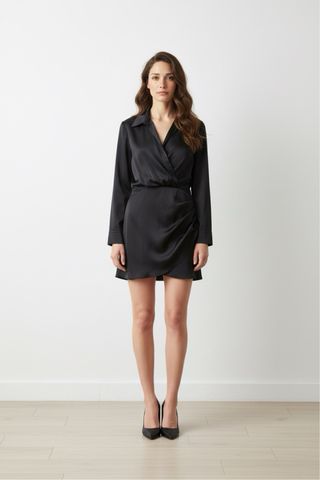 Elegante vestito in raso con scollo a V e maniche lunghe. - Tessuto satinato lucido. - Design a portafoglio. - Lunghezza mini. 📌 Taglia: S 📌 Colore: nero 📌 Tessuto: 100% poliestere 📌 Condizioni: nuovo con cartellino 📌 Motivo vendita: inutilizzo Scrivimi pure per info o misure 😊