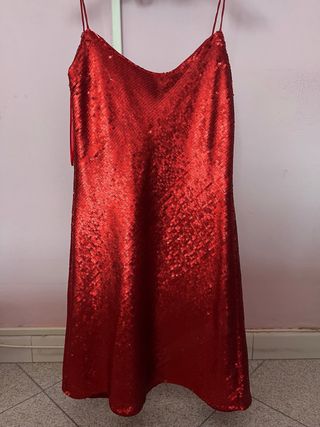 Bellissimo miniabito Zara, rosso e scintillante grazie alle paillettes. - Perfetto per una serata speciale - Modello corto e senza maniche - Vestibilità aderente