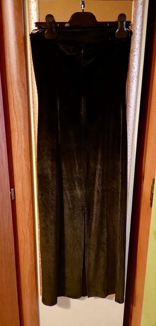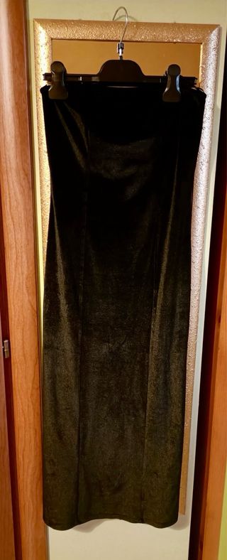 Elegante vestito lungo in velluto nero. Perfetto per occasioni speciali. - Tessuto morbido e lucido. - Design a tubino.