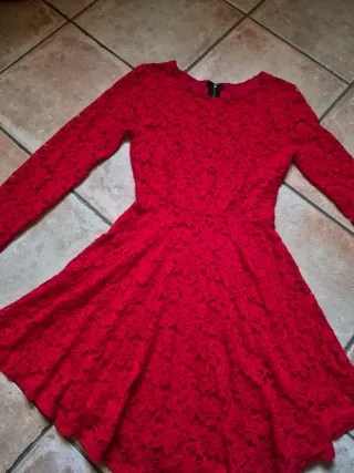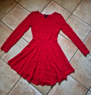 Elegante vestito corto con maniche lunghe e dettagli in pizzo. - Tessuto in pizzo. - Maniche lunghe. - Scollo rotondo. - Zip posteriore. - Taglia S (ho dovuto tagliare l'etichetta perchè davanti fastidio)