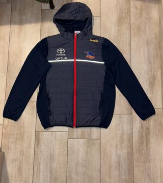 Giacca sportiva da uomo con cappuccio. - Zip frontale rossa. - Inserti imbottiti sul davanti. - Maniche in tessuto tecnico. - Logo Toyota e Optus sul petto. - Logo O'Neills sulla manica.