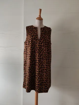 Scamiciata con fantasia leopardata. - Scollo a V. - Senza maniche. - Lunghezza sopra il ginocchio.