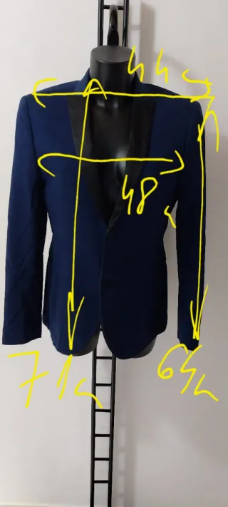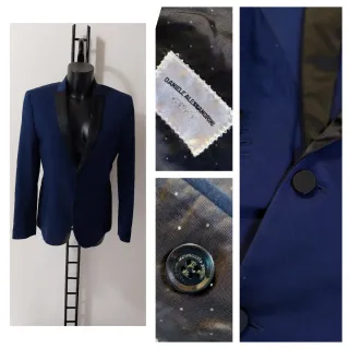 Elegante blazer Daniele Alessandrini. - Colore blu con dettagli neri. - Collo a scialle. - Chiusura a un bottone.