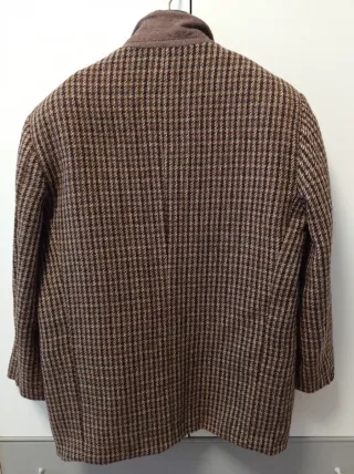 Giacca da uomo in pura lana vergine, con un classico motivo a spina di pesce. - Materiale: 100% Lana Vergine - Fantasia: Spina di pesce - Chiusura: Due bottoni - Tasche: Due tasche a filo sul fondo e una tasca a filetto sul petto
