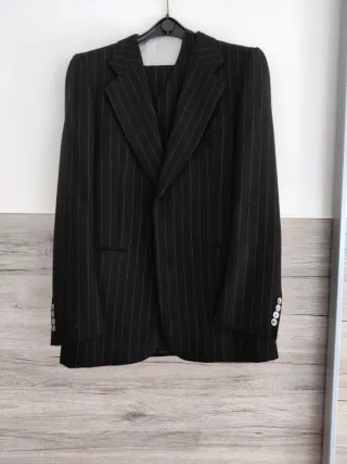 Elegante completo European Style con un design a righe. - Giacca con revers a lancia. - 100% Lana Zignone. - Polsini con bottoni. - Pantaloni coordinati.