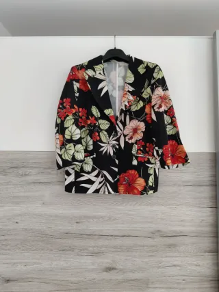 Blazer sartoriale con una vivace stampa floreale. - Design unico con fiori rossi e verdi. - Modello con revers classici. - Chiusura con bottone.