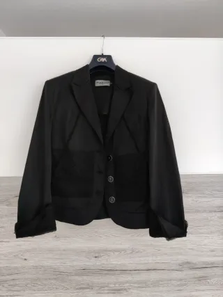 Elegante blazer nero del marchio Pizzicò. - Dettagli in pizzo sulle maniche e sul busto. - Chiusura con bottoni. - Collo a revers.