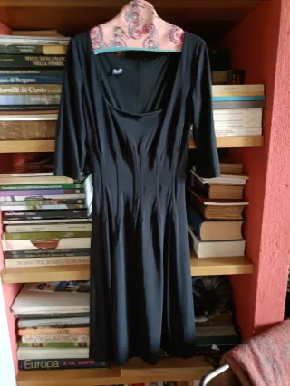 Lunghezza ginocchio. Stecche rigide che segnano vita, tessuto elasticizzato, molto avvolgente. Maniche 3/4. Cerniera dietro. Mai indossato x cambio taglia. - Scollo quadrato - Maniche a tre quarti - Taglio sagomato