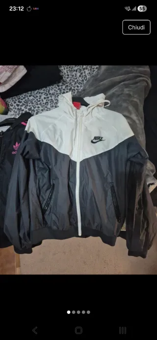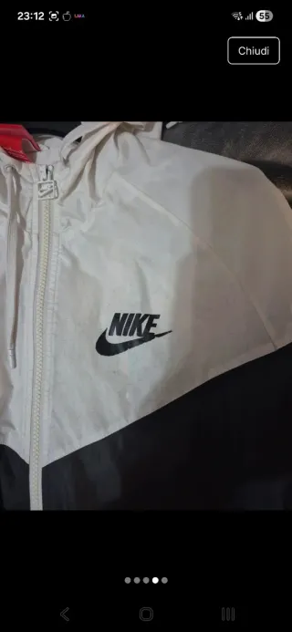 Giacca a vento Nike con cappuccio. Un po' nera nel logo vedi foto - Logo Nike sul petto - Zip frontale - Tasche laterali con zip