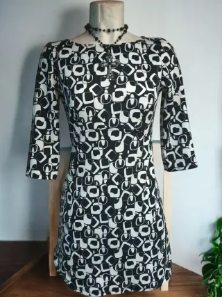 Vestito corto geometrico bianco e nero tg M