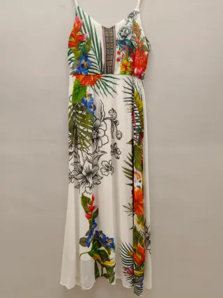 Vestito lungo bianco con decorazione floreale. In velo, con doppio tessuto sotto e spalline sottili. È più stretto in vita e cade morbido. Ideale per cerimonie e anche per serate estive. Vestibilità M, taglia etichetta S/M. Misure specifiche(no circonferenza): distanza ascellare 47cm, lunghezza totale da spalla a giù 145cm, vita 37cm elasticizzata. #vinteditalia #estate #pantaloncini #jeans #femme #shorts #vintedfrance #vintedspain #vintedcloset #vintagestyle #fashion #chic #vintage #summer #winter #autumn #spring #indie #hipster #aesthetic #alternative #basic #sport #indie #kids #abito #man #dress #uomo #vendocapi #saldi #sales