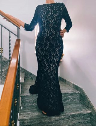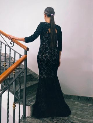 Bellissimo abito lungo in pizzo nero