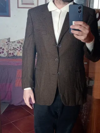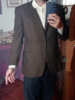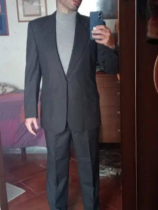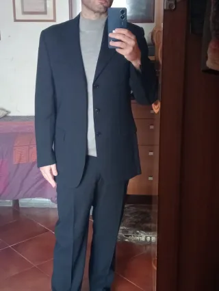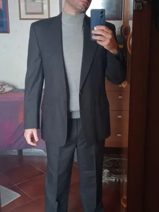 Completo uomo pantalone e giacca. Giacca monopetto a tre bottoni. Tutto in tessuto misto lana 97 e nylon 3. Condizioni generali ottime/eccellenti. Difetti: il cavallo è un pò usurato (vedi ultima foto). Taglia 50 Drop 8. Verificare misure in centimetri, specialmente dei pantaloni. Made in Italy. Tombolini. Giacca - spalle 50 cm - petto 55/56 cm - lunghezza (centro schiena) 82 cm - manica 66 cm Patalone - vita 42 cm - vita -> cavallo 31 cm - lunghezza 105 cm ( + 12 cm disponibili per allungarlo) - orlo 20 cm