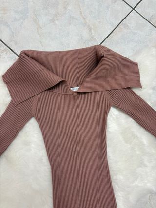 Vestito marrone a costine scollo Bardot