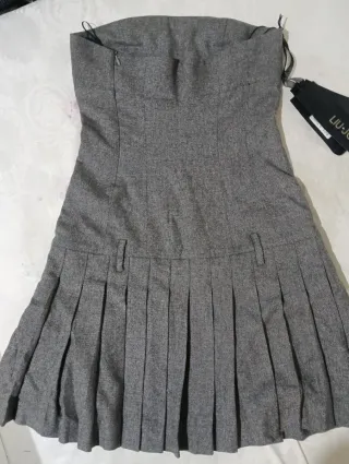 Elegante vestito Liu Jo grigio, perfetto per ogni occasione. - Modello a tubino senza spalline. - Gonna con pieghe dettagliate. - Tessuto di qualità. Mai indossato... Con etichetta... Tg.44