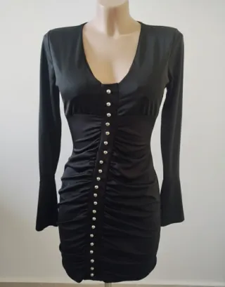 Vestito nero con bottoni e arricciatura