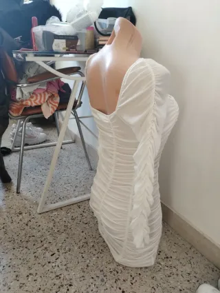 Vestito monospalla panna taglia unica