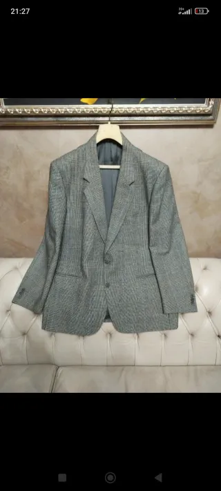Completo fresco lana pantalone e giacca coordinati. Giacca monopetto a due bottoni, pantalone con pence e orlo risvoltato. Condizioni eccellenti, pari al nuovo. Purtroppo manca l'etichetta della taglia ma è una 50. Si raccomanda di verificare le misure in centimetri. Made in Italy. Valentino Garavani vintage. Giacca - spalle 50 cm - petto 56 cm - lunghezza (centro schiena) 78 cm - manica 65 cm Patalone - vita 44 cm - vita -> cavallo 31 cm - lunghezza (per allungarlo è rimasta solo la stoffa risvoltata) 105 cm - orlo 22 cm