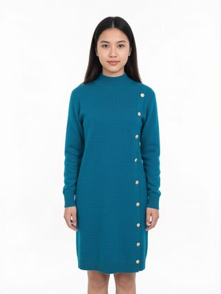Vestito lungo in maglia color petrolio, taglia S. Presenta una fila di bottoni dorati sul lato. Super caldo e morbidissimo questo vestito vi darà un look elegante ma nella comodità della viscosa . Ideale anche come idea regalo natalizia Disponibile ultimo pezzo ❤️🔥 anche nella taglia M - Collo alto. - Maniche lunghe. - Dettagli con bottoni dorati.