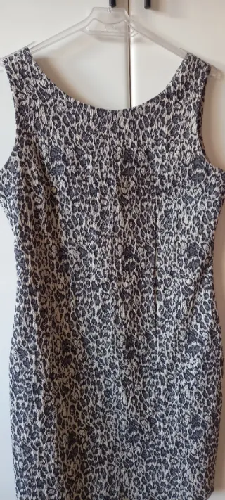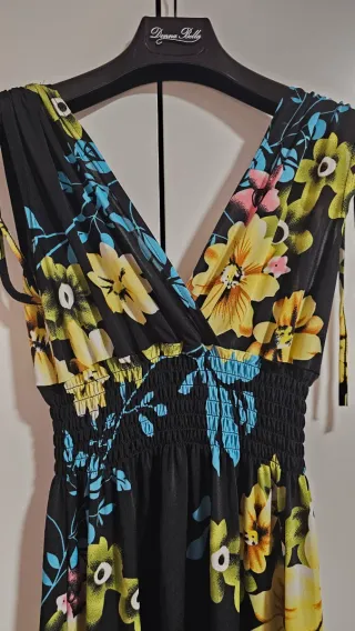 Tubino elasticizzato fantasia. È segnata una misura 44 ma veste una 42. Tessuto confortevole, design moderno. Marchio OVS Gruppo COIN Misure da ascella ad ascella cm 44/45 Lunghezza circa 85