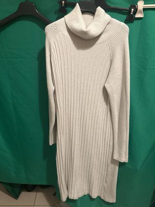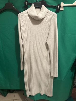 Vestito lungo in maglia con collo alto. - Tessuto a coste verticali. - Maniche lunghe. - Lunghezza midi.