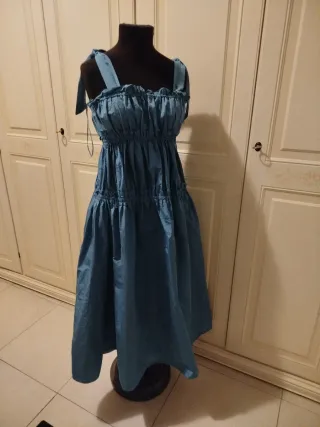 Vestito estivo con spalline annodate e dettagli arricciati. - Spalline con fiocchi regolabili. In ottimo stato