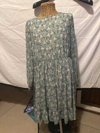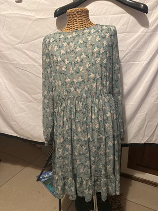 Vestito leggero con maniche lunghe e fantasia floreale. Mai indossato. - Scollo a V con dettaglio. - Vestibilità comoda.