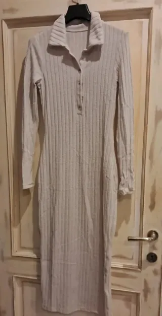 Vestito lungo da donna con maniche lunghe e colletto. - Tessuto a costine. - Chiusura con bottoni sul davanti.