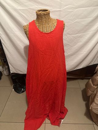 Abito lungo in lino e viscosa. - Tessuto leggero e traspirante. - Taglio ampio e comodo. - Lunghezza midi.