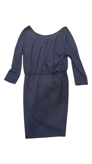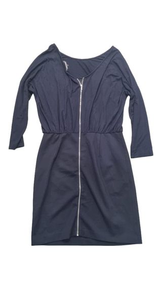 Abito blu scuro con cerniera frontale e maniche a 3/4. Modello comodo con vita leggermente arricciata che valorizza la figura. Perfetto per look casual o da ufficio. ✅ In ottime condizioni, indossato pochissimo. misure lunghezza dal collo 96 cm, lunghezza dall’ascella 76,5 cm torace 51 cm Taglia M / IT 42 / EU 38