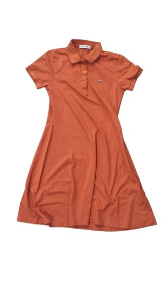 Vestito polo Lacoste in cotone, colore arancione. - Maniche corte. - Collo a polo. - Chiusura con 3 bottoni. - Logo coccodrillo ricamato sul petto. Abito polo Lacoste arancione, elegante e casual, con bottoni frontali e colletto. Tessuto leggero e comodo, perfetto per la primavera e l’estate. In ottime condizioni, senza segni di usura. Per ulteriori dettagli o foto, contattami in privato. misure lunghezza dal collo 64,5 cm, lunghezza dall’ascella 67 cm torace 39 cm Taglia XXS / IT 36 / EU 32