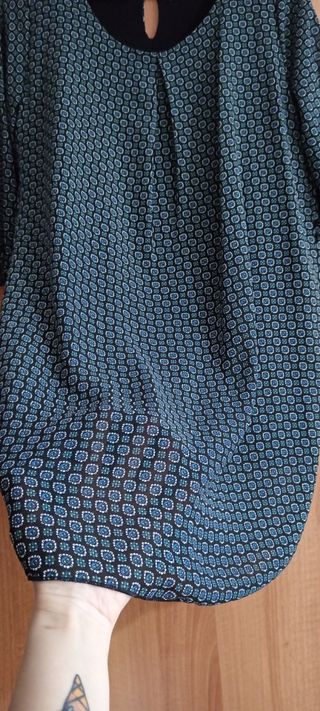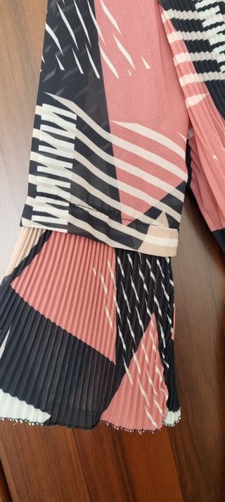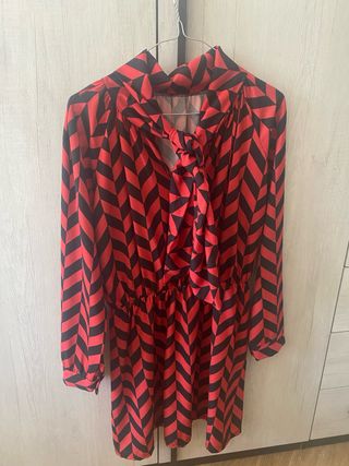 Vestito leggero con una fantasia geometrica a zig-zag. TAGLIA IT 38- Eu 34- S - Scollo a V con fiocco. - Maniche lunghe. - Elastico in vita.