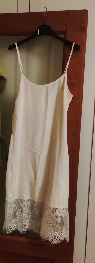 Vestito velato lunghezza fino al ginocchio circa, ha la sottoveste, indossato solo una volta e portato in lavanderia, pari al nuovo.Veste taglia S/M, ha i passanti per la cinta. Non lo indosso mai. Vendo per inutilizzo.