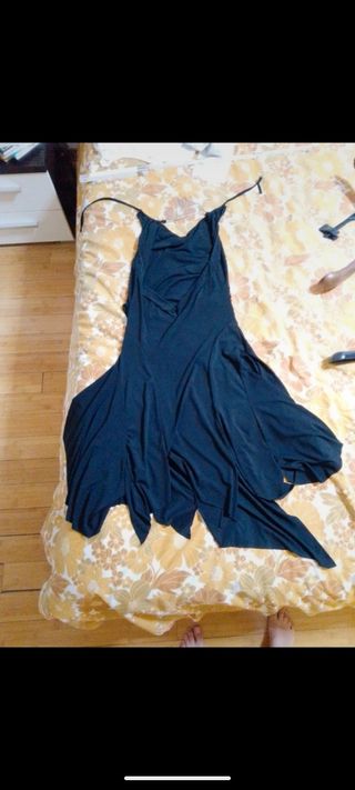 Elegante vestito nero perfetto per ballare tango o per serate caraibiche. - Tessuto morbido e fluente. - Spalline sottili. - Design asimmetrico. Ha una collana con inserti di brillantini davanti molto graziosa Comodo per ballare, lunghezza a ginocchio io sono alta 170cm A schiena scoperta a V Tessuto morbido per serate da ballo in eleganza, sensualità ma non rinunciando alla comodità