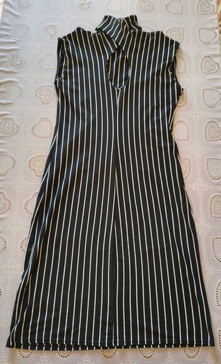 Elegante vestito a righe con un design unico. - Collo intrecciato - Scollatura a goccia - Smanicato - Fantasia a righe verticali - Elasticizzato - Taglia: M (da ascella ad ascella 39 cm, lunghezza 90 cm)