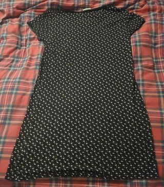 Elegante vestito camicia con una fantasia unica. - Fantasia di cerchi bianchi su fondo nero. Tasche laterali Chiusura centrale con bottoni a scomparsa - Taglia M, si adatta a diverse corporature. - Design versatile, ideale per diverse occasioni. Con cintura in vita è Super Top Prezzo fisso euro 10