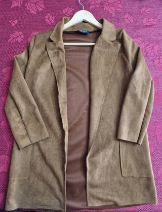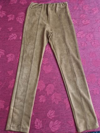 Bellissimo completo in camoscio marrone, composto da giacca e pantaloni. Perfetto per un look elegante e raffinato. - Giacca con collo a revers e tasche. - Pantaloni a sigaretta. - Tessuto morbido e piacevole al tatto.