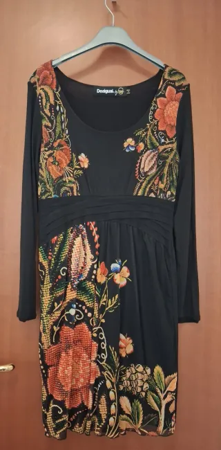 Vestito da donna Desigual in tessuto leggero con stampa floreale colorata. - Maniche lunghe. - Fascia elastica in vita. - Stampa vivace e dettagliata.