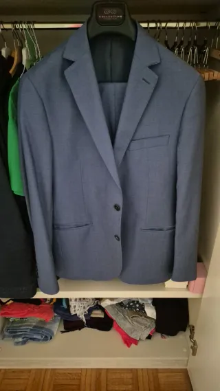 Elegante abito completo da uomo, perfetto per occasioni formali. - Giacca a due bottoni. - Pantaloni con tasche. - Tessuto di qualità. Abito classico monopetto in fresco di lana, composto da giacca e pantalone (taglio slim). Colore avio (carta da zucchero). Marca ANGELICO (noto Lanificio in Biella. Made in Italy). L'abito è usato ma si conserva in buonissime condizioni. La taglia è una 52 ma veste molto poco, forse come una 48. Ho messo in annuncio alcune foto con le misure che sono: GIACCA: Larghezza spalle = 46 cm PANTALONE: Larghezza vita = 90 cm L'abito è disponibile a MILANO in zona NOLO per consegna a mano. Spedizione dis